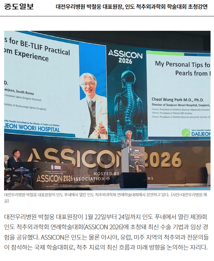 [ÁßµµÀϺ¸] ´ëÀü¿ì¸®º´¿ø ¹Úö¿õ ´ëÇ¥¿øÀå, Àεµ ôÃ߿ܰúÇÐȸ Çмú´ëȸ ÃÊû°¿¬
