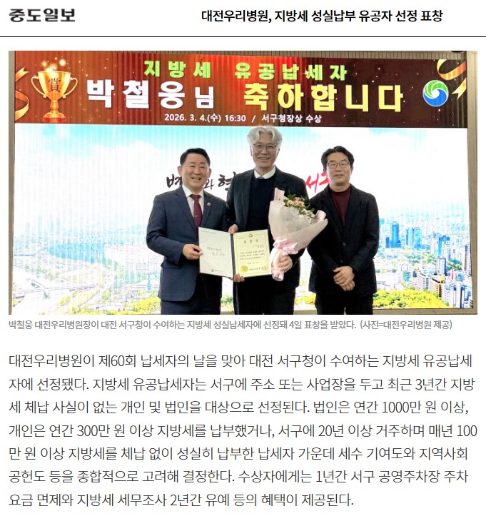 [ÁßµµÀϺ¸] ´ëÀü¿ì¸®º´¿ø, Áö¹æ¼¼ ¼º½Ç³³ºÎ À¯°øÀÚ ¼±Á¤ ǥâ